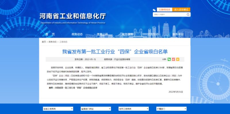 | 河南省第一批工業行業“四保”企業省級白名單 | ||